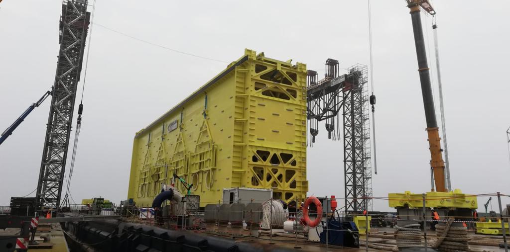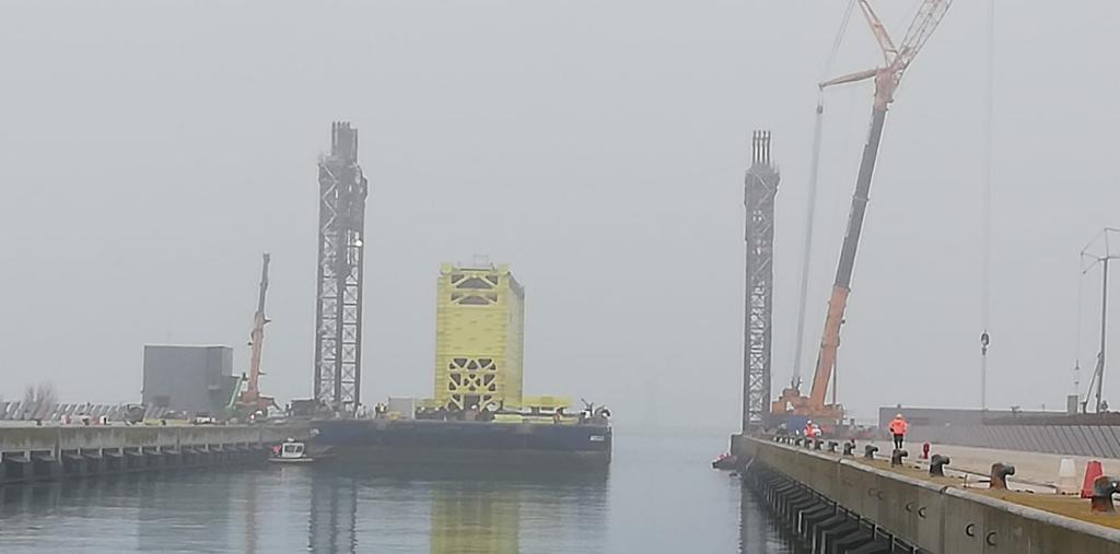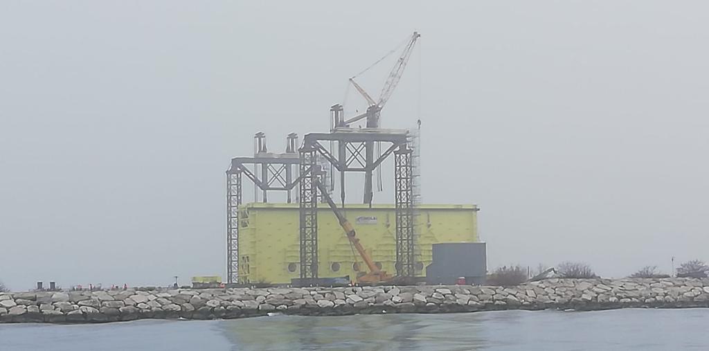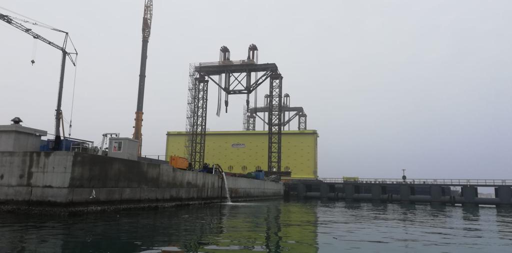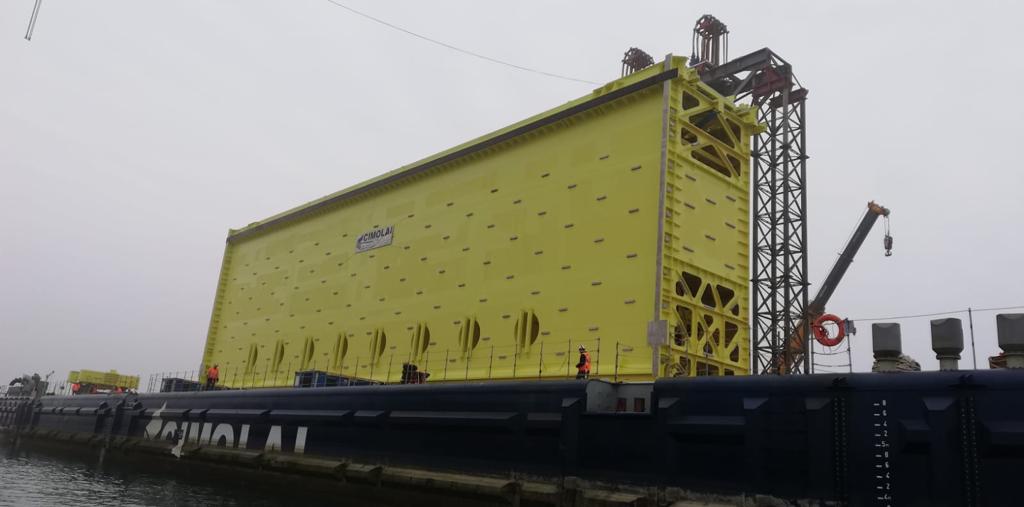 Alle prime luci dell’alba la porta della conca di Malamocco è arrivata a Pellestrina.