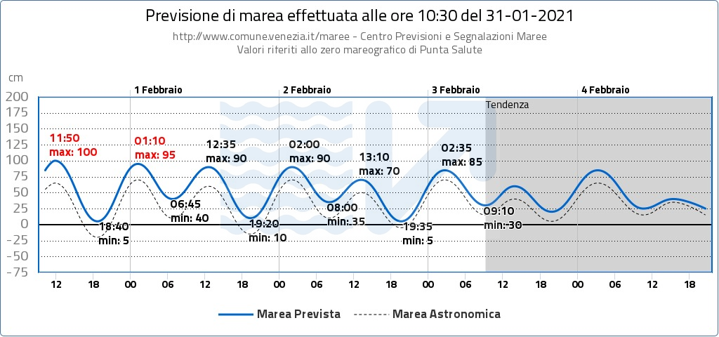 Valutato l’evolversi delle condizioni meteo marine a fronte di una previsione che indicava un possibile evento di alta marea con colmo per il 7 febbraio 2021 a Chioggia alle 21.20 e a Venezia alle ore 21.50, si comunica il falso allarme e che proseguirà il monitoraggio per le prossime ore per i possibili successivi eventi