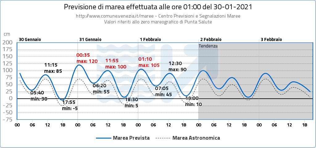 In considerazione dell’evoluzione delle condizioni meteo marine rispetto a un possibile evento di alta marea con colmo previsto per il 1 Febbraio 2021 a Chioggia alle 1.40 e a Venezia alle ore 1.40, proseguirà il monitoraggio per le prossime ore con il mantenimento in “pre-allerta” delle squadre operative alle bocche di porto.